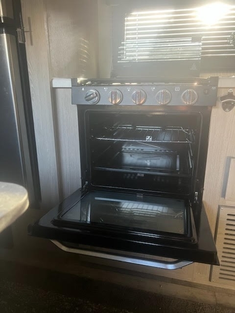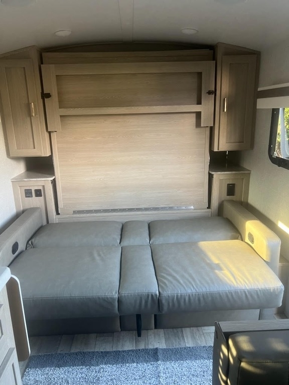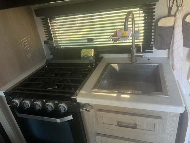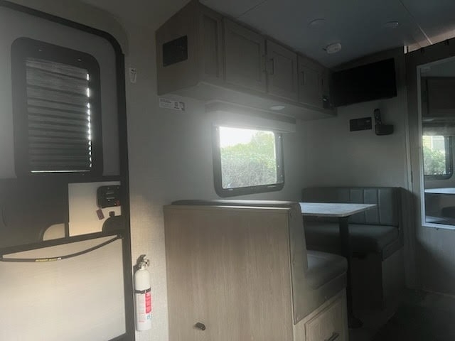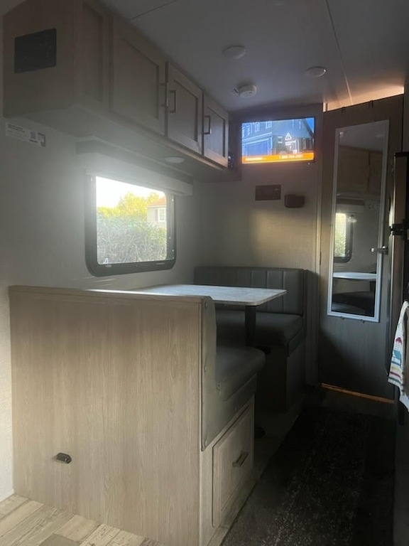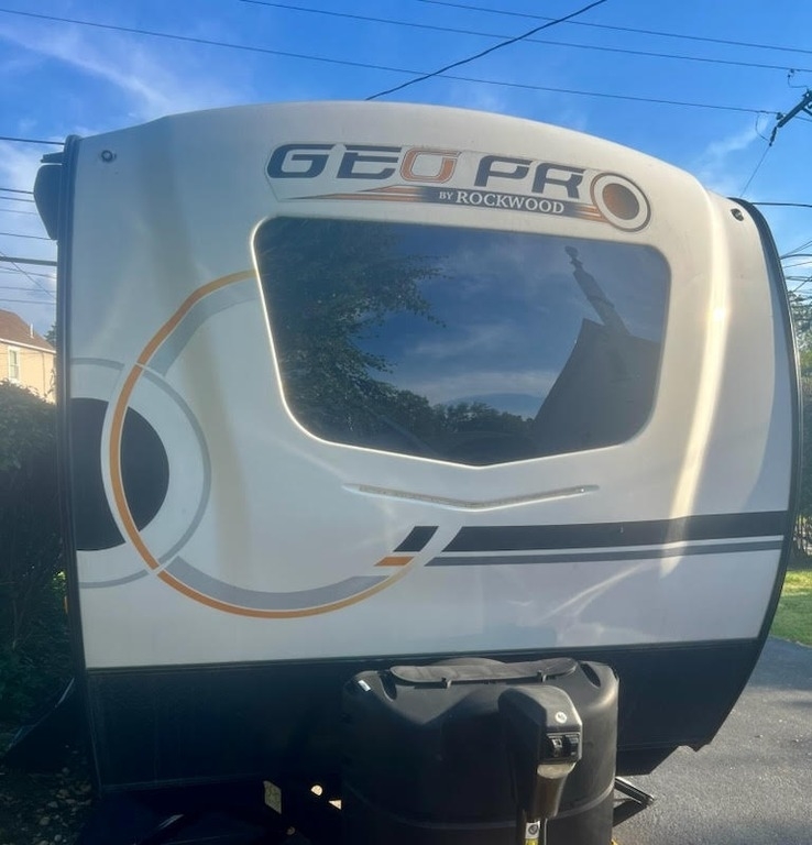 “For sale is a 2022 Forest River Rockwood Geo Pro G19FD travel trailer—fully equipped and ready to camp! This lightweight, versatile trailer sleeps up to three people with a sofa and trundle bed, and features a good-sized bathroom with a linen cabinet and small tub. The kitchen is outfitted with Magic Chef appliances, a 3-burner oven range, hooded fan, stainless steel sink, and plenty of cabinet space for storage. It also includes a 22-inch swivel-mount TV, 2-zone Bluetooth stereo (indoor/outdoor), Wi-Fi Ranger, USB ports, and a CO2/fire detector for safety. Powered by solar panels to keep the battery charged, the trailer has two propane tanks, and is wired for two batteries (currently running on one). Other features include outdoor speakers and griddle, plenty of storage, and recent servicing and de-winterization. This well-maintained trailer is stored clean and camp-ready—just hitch up and go!”