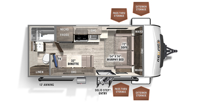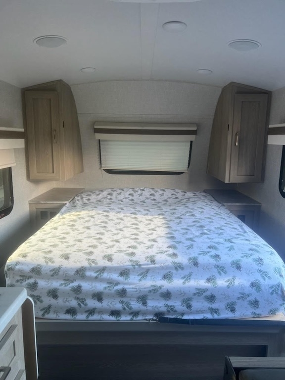 This Forest River has an overall length of 20.67 feet and comes equipped with a 13-foot power-retractable awning, 1 A/C unit, a solar panel, and room to sleep up to 3. This unit has been well-maintained.