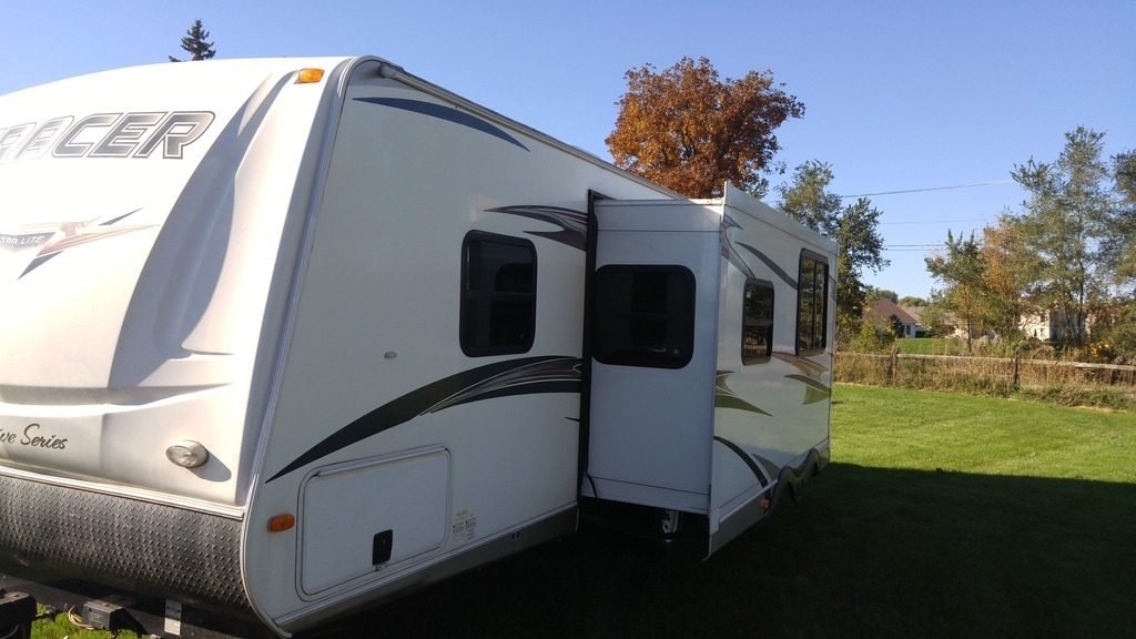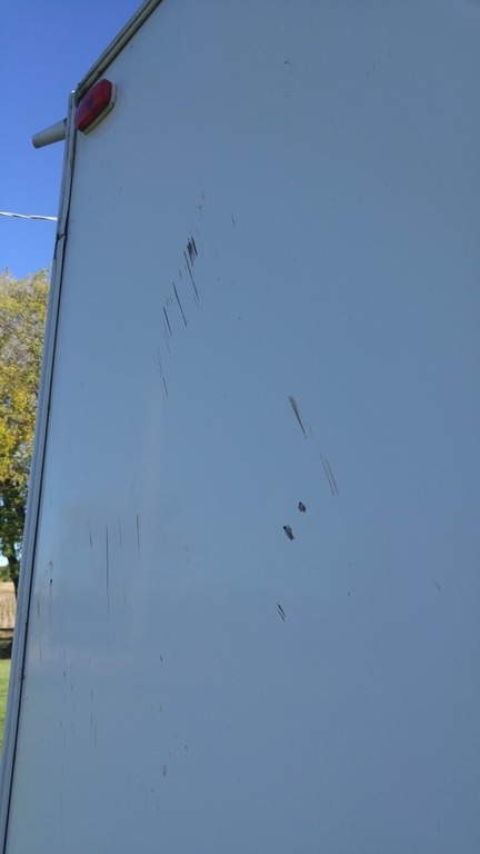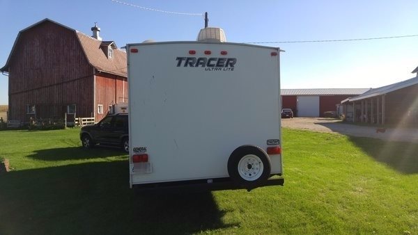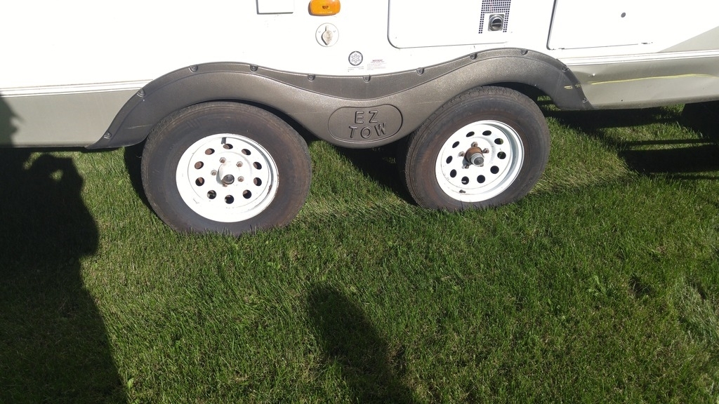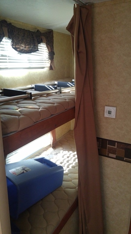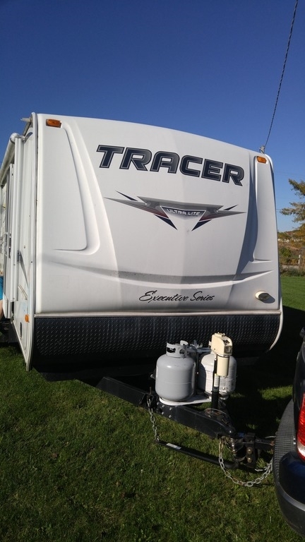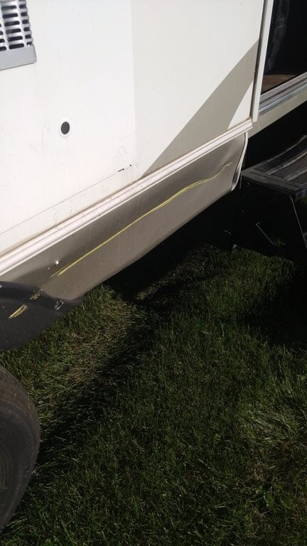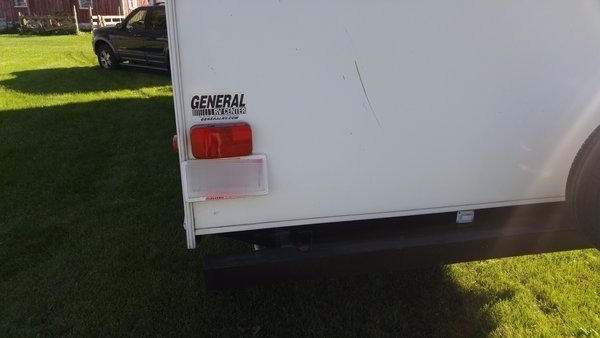 NOTE: Pictures of the rear and passenger side of the camper show minor scratches and dents. Rear bumper is slightly bent as well. This is also a non-smoking trailer.