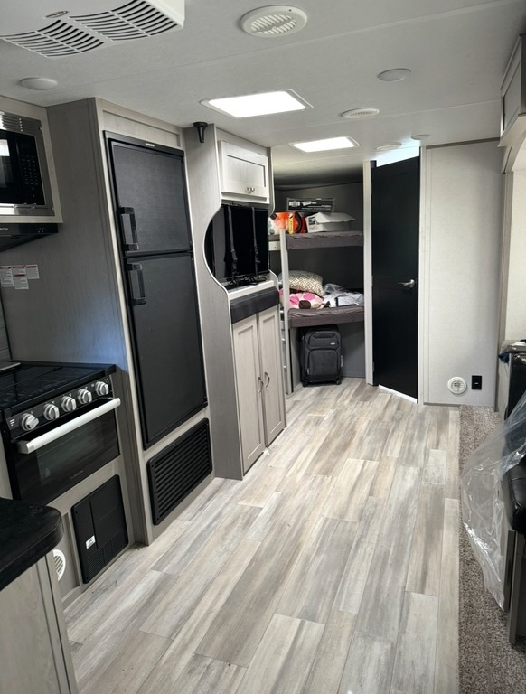 power retractable awning, 1 A/C unit, bunk beds, an outdoor kitchen, and plenty