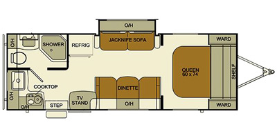 The Evergreen Ascend is approximately 26.25 feet long and comes equipped with 1 Slide out, 1 Awning, and 1 A/C units. 4 people are able to sleep comfortably in the unit.