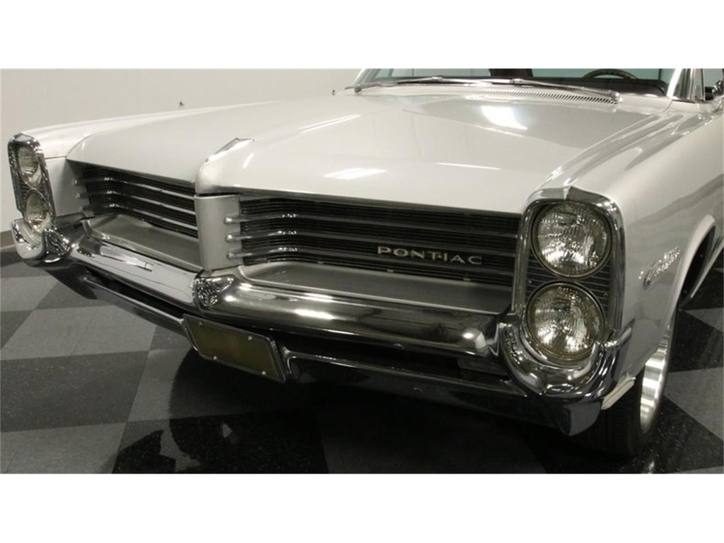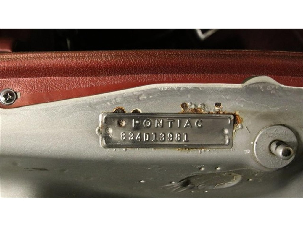 This Pontiac is powered by a 389 V8 engine with the tri-power option paired with a 3-speed automatic transmission. The odometer reads 45,248 miles and is shown with a Platinum Grey exterior and a red interior. This vehicle has been non-smoking, garage-kept, and well-maintained.