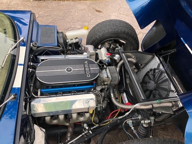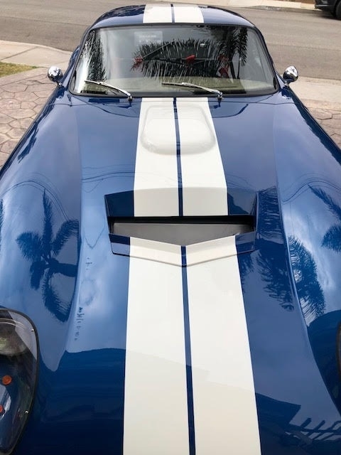 This Shelby is powered by a Chevy LS1 gas engine, paired with a Tramac T56 6-Speed manual transmission. There is only 200 miles on this Replica only from transporting from assembly and test drives. This beauty is shown in Blue and White and has been garage kept. Also on this beautiful replica it has an upgraded custom hood nose, and the mold to make a new one comes with the car, see the pictures below!!