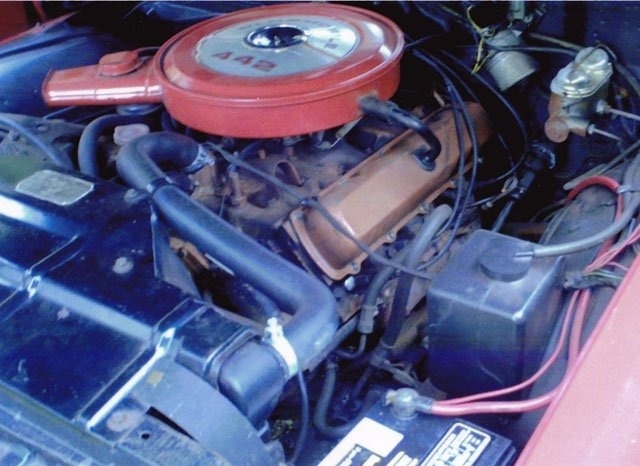This Oldsmobile is powered by a 325HP 400 V8 engine paired with a 3-speed automatic transmission. The odometer reads 30,800 miles and is shown with a red exterior and a matching red vinyl interior. This vehicle has been non-smoking, garage-kept, and well-maintained.