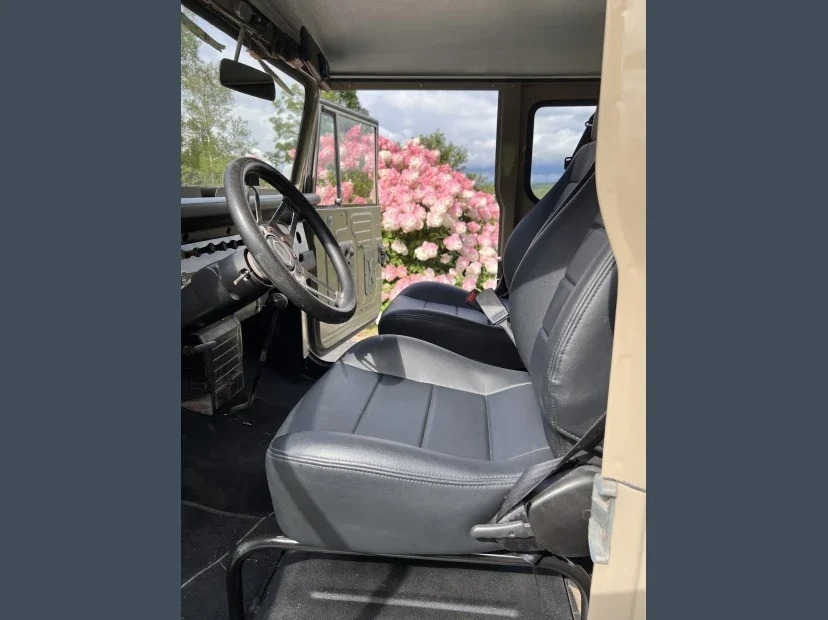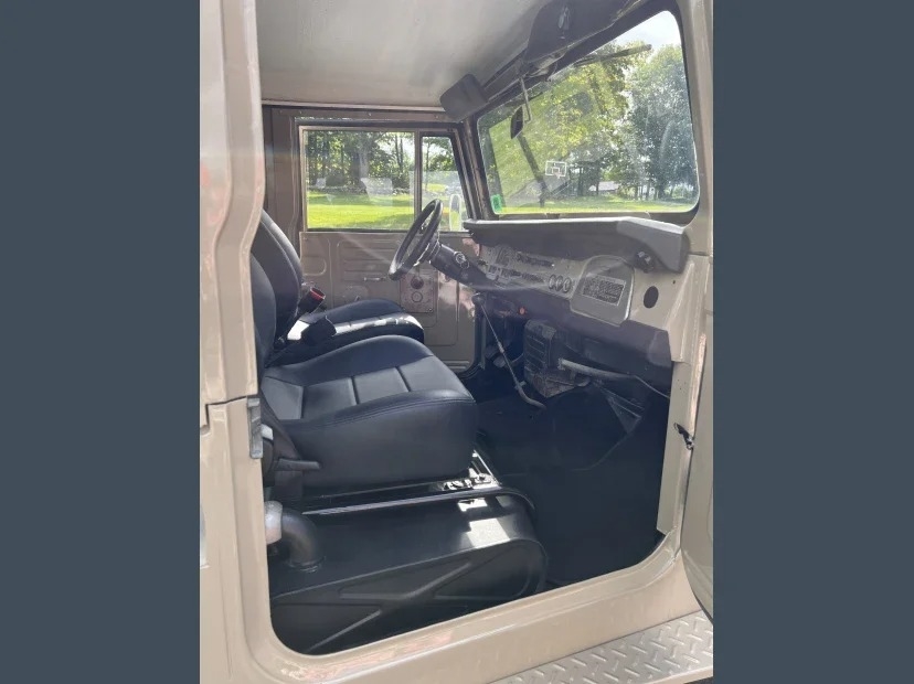 This 1969 Toyota Land Cruiser is powered by an 8-cylinder 350 engine and a 3-spd manual transmission with 81,156 original miles. Proudly shown with beige exterior paint with beige/black interior.