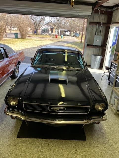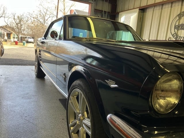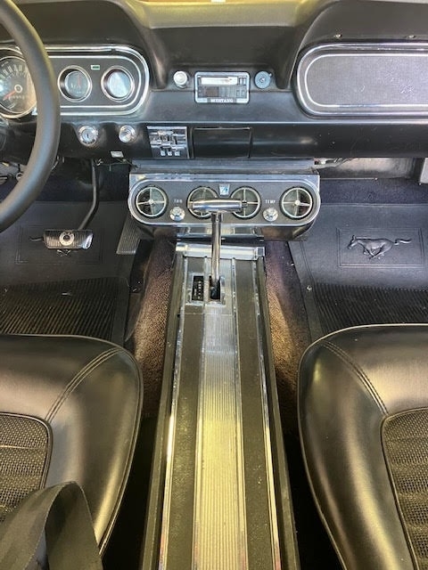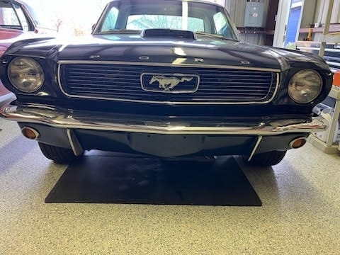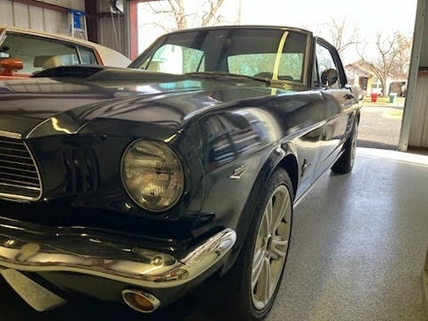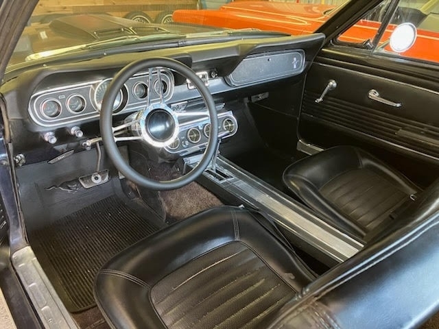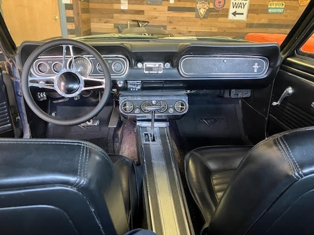 1966 Ford Mustang 2dr Coupe is powered by an 8-cylinder 289 engine and an automatic transmission with 69,023 miles on the odometer. Garaged and covered, the exterior paint is a Midnight Blue paint and the black interior, dash, and headliner are all in great condition.