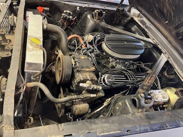 Upgrades include new power disc brakes, new shocks, new steering linkage, new carburetor, new valve covers and air cleaner kit, distributor cap & rotor, battery, and wheels.