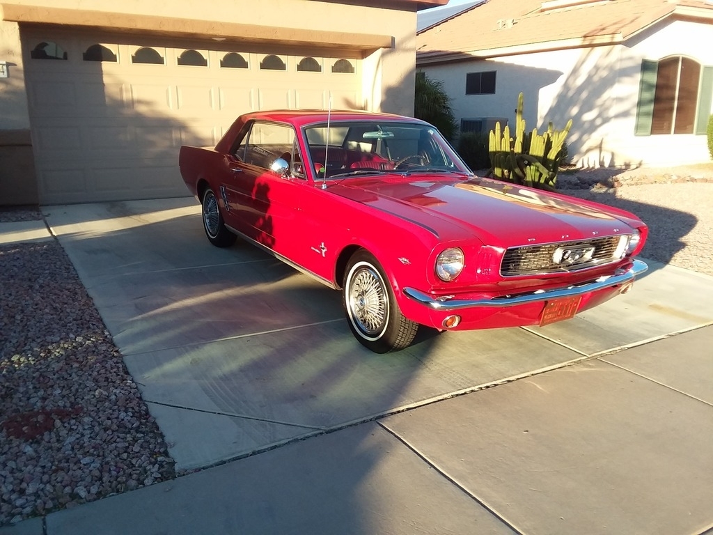 This Ford Mustang is powered by a 289ci V8 gas engine, paired with an automatic transmission. There are only 53,937 Original Miles on this classic. This beauty is shown in Red, has been garage kept and is non-smoking.