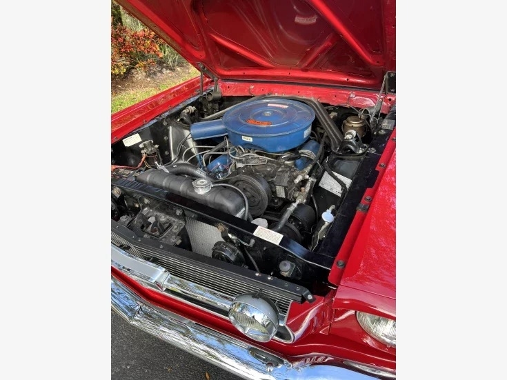 This Mustang is powered by a numbers matching 289 with 64,000 original miles paired with a 4 speed w/overdrive automatic transmission. This classic is shown in a beautiful red with black convertible top exterior and red vinyl interior.