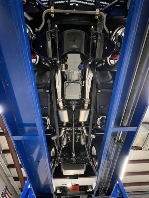 headers, custom 3-inch exhaust and Magnaflow mufflers. The Power is sent to a
