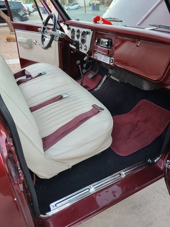 original miles this Chevy is shown with a maroon exterior and matching new interior