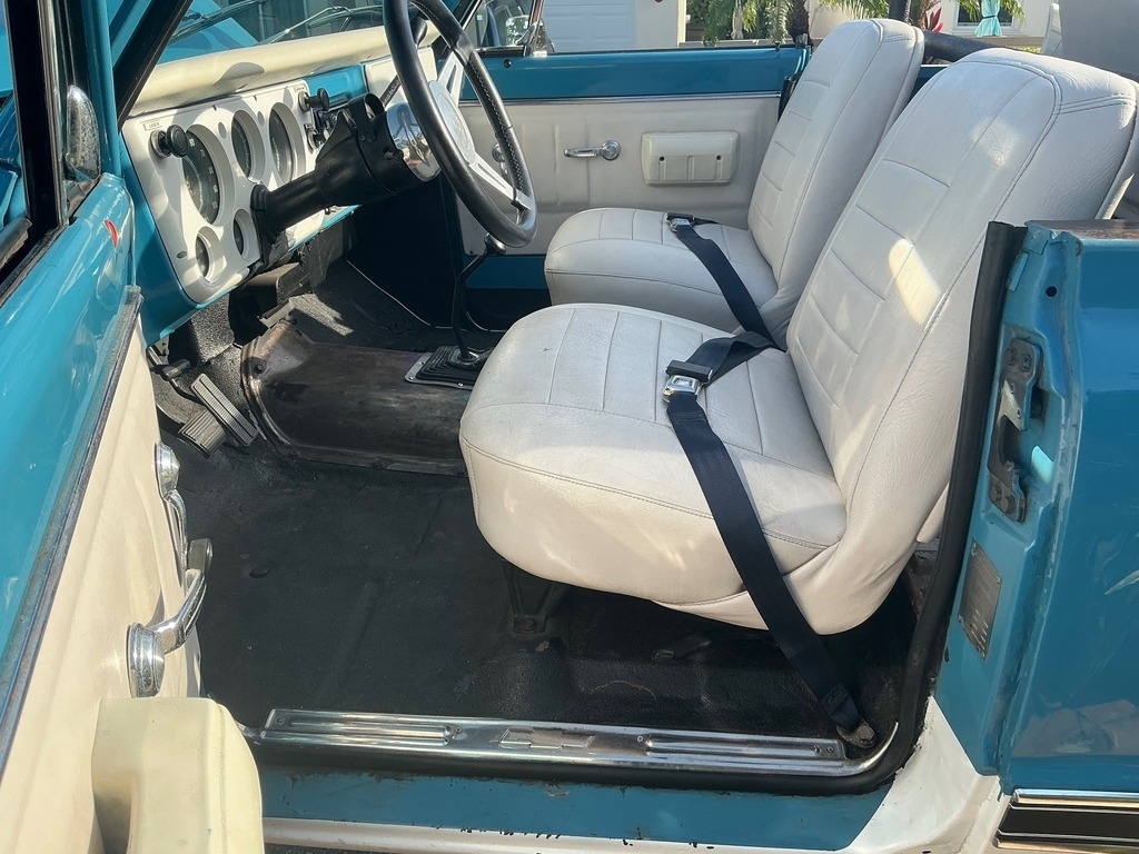 “For sale is a 1971 Chevrolet Blazer K/5 in excellent condition with a clean title. This classic SUV features a strong 350 V8 engine paired with a 350 Turbo automatic transmission and a 12-bolt rear end. With low miles on the rebuilt engine, it runs and drives like a dream. The exterior is finished in a striking turquoise, complemented by a clean white interior, giving it that timeless vintage look. It’s garage-kept and ready for the road or the beach. This K/5 comes without a top, perfect for open-air cruising. However, all brackets to receive a hard top are in place. A true head-turner and an iconic piece of Chevy history.”