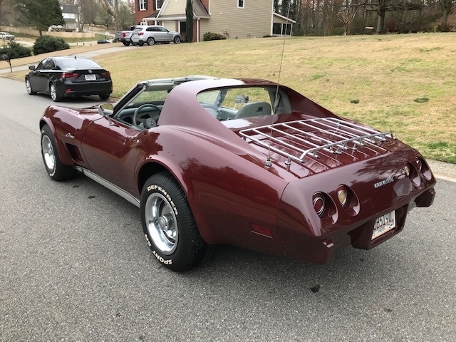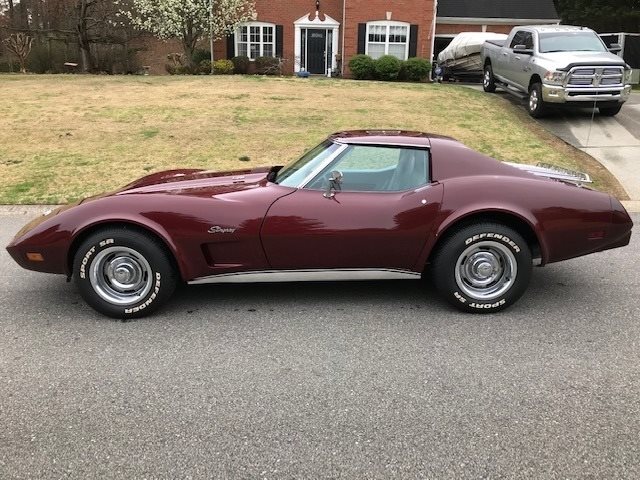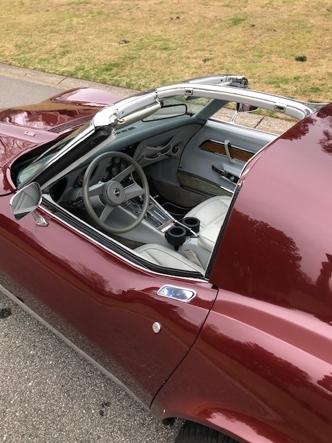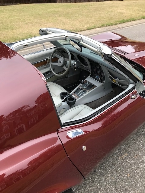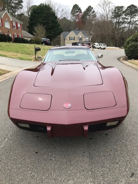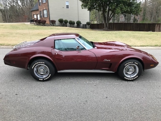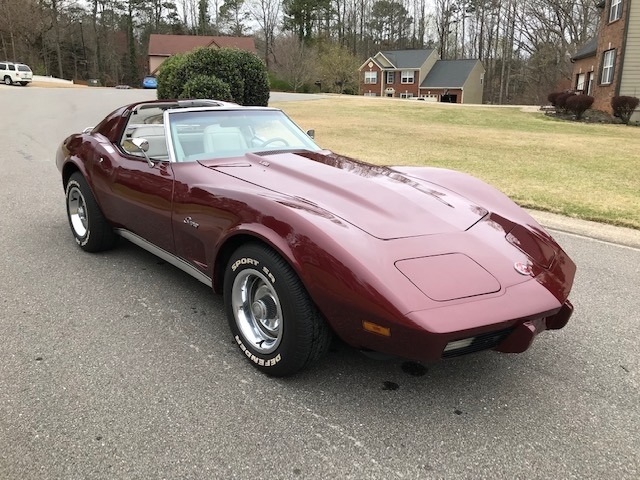 This 1976 Chevrolet Corvette Stingray is powered by a 350ci V8 Gasoline Engine, paired with a Turbo Hydra-Matic 3-Speed Automatic Transmission. This Stingray has a Maroon Exterior with a Grey Interior. This T-Top has been garage kept and non-smoking.