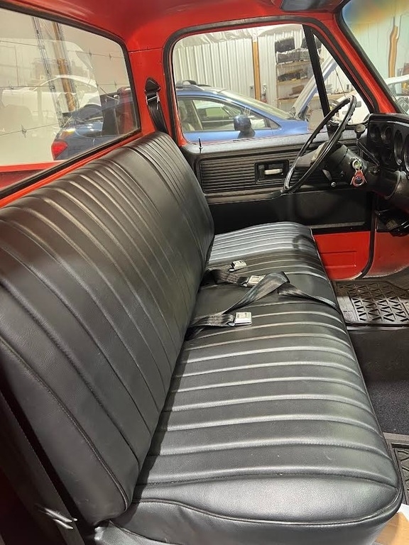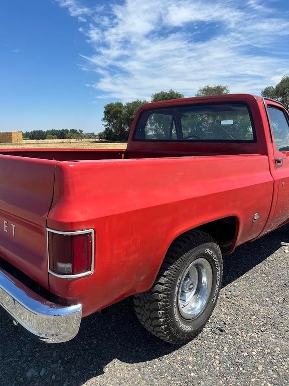 “This 1977 Chevrolet C10 Custom Deluxe is a true short box, ½-ton 2WD survivor with a solid blend of originality and smart upgrades. It’s powered by a strong-running 350 V8 paired with a TH350 automatic transmission and drives great. Since pulling it out of warehouse storage in Portland (where it had been sitting since 2001 with a vintage “00” license tag), I’ve gone through it thoroughly with many new parts: carb, battery, fuel pump, steering box and pump, distributor, aluminum radiator, brakes, and more. It also features headers and dual exhaust for that classic rumble. The interior has been completely redone—new door cards, carpet, seat belts, hinge pins, and a professionally upholstered bench seat bring it back to life while keeping its vintage charm. The paint is original with a nice light patina and only three small rust spots. I bed-lined the truck bed with Herculiner after sanding down surface rust to protect the metal—there were no rust issues underneath. Rolling on new tires with period-correct Chevy wheels, this C10 has the classic look and modern reliability. It’s a great-running, eye-catching classic ready to be driven and enjoyed.”