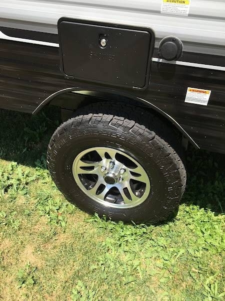 “This RV is fully contained comes with an Off-Road Package for getting away from it all. Specs included in the photos. This RV also comes with many extras, like the 24-inch Smart TV, brand new black RV skirt custom made by Extreme Covers, a winter cover, two 20 lb propane bottles, 3-burner stove with oven for baking cookies and brownies, microwave oven, air conditioner, large refrigerator with separate freezer, restroom with separate shower, double sinks in kitchen, full-size bed, upgraded dinette cushions, propane heater, stereo with outside speakers, outside shower, outside propane hook up for BBQ, electric awning, back door entrance with 2 large steps, and wheel covers for Mag wheels. Nice size storage under the RV that is accessible from inside as well. This unit has been well taken care of and only used twice.”