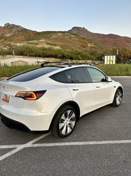 “Selling my baby! Absolutely love this car but looking for something different as our family expands. Brand new, 9-month old Model Y in perfect condition. Ski rack add on. White leather interior. All the charging ports in the world. AWD.”