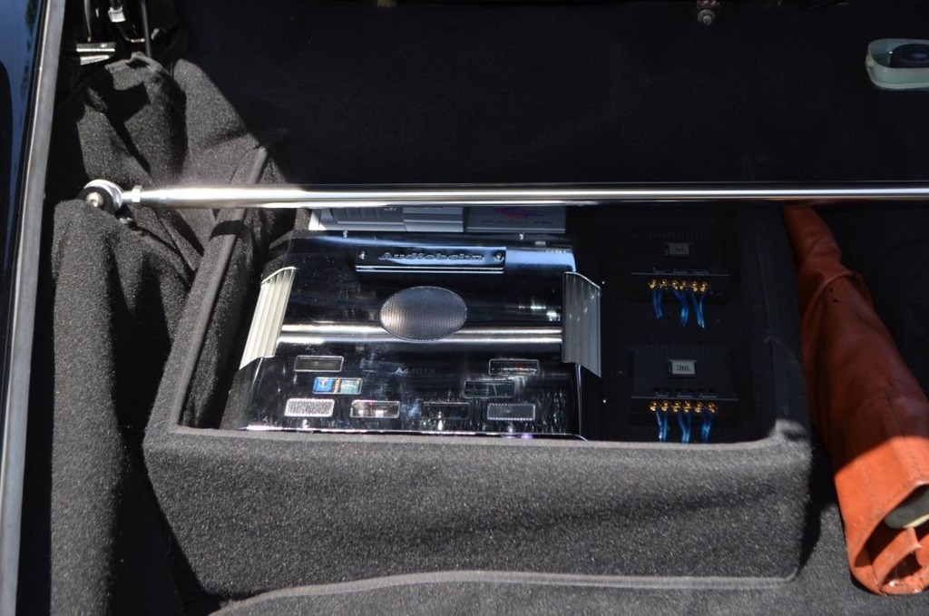shown in Black with a Custom Saddle Leather and Cloth Interior, has been garage