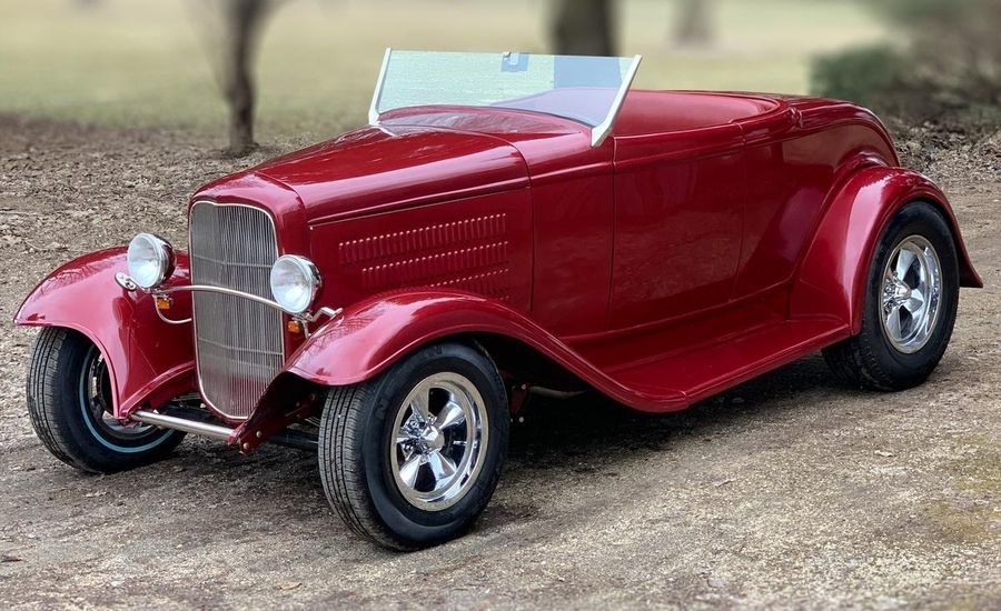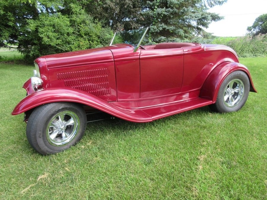 This  ’32 Ford Hot Rod has Undergone a $53,000 Fully Documented Frame Off Restoration and is powered  by a Big Block 'Nail Head' 401 ci V8 Gasoline Engine from a 1963 Buick Riviera, paired with a General  Motors Turbo Hydra-Matic 400 3-Speed Automatic Transmission with a Shift Kit, with Only 20 Rebuild Miles. True Mileage Unknown. This Model B is Shown in a Garnet Red Exterior with a Burgundy Naugahyde  Interior, and has been Garage Kept and Covered with a Newer Car Cover that is  Included w/Purchase!
