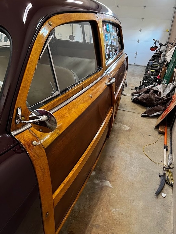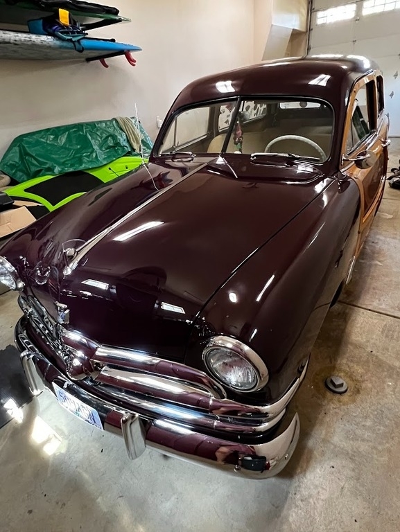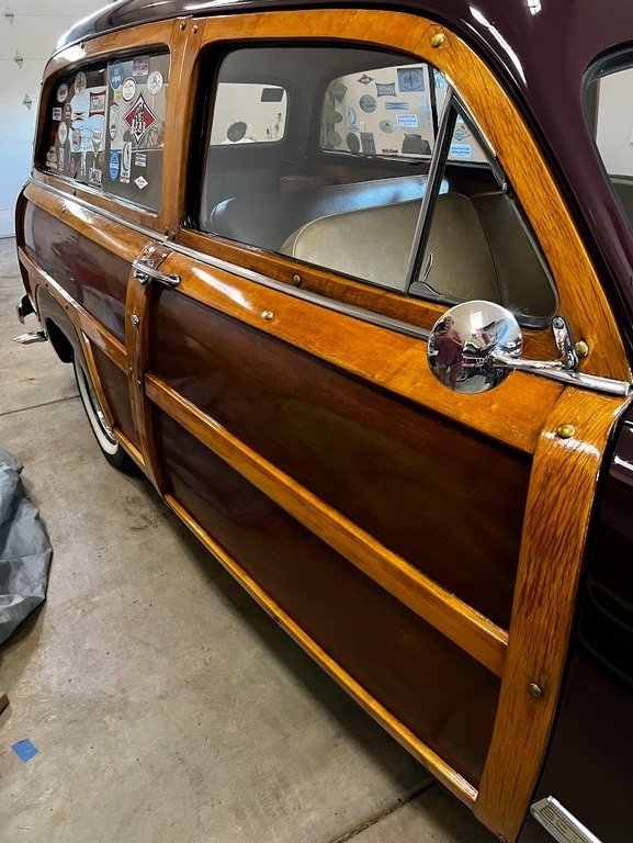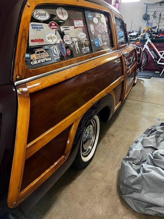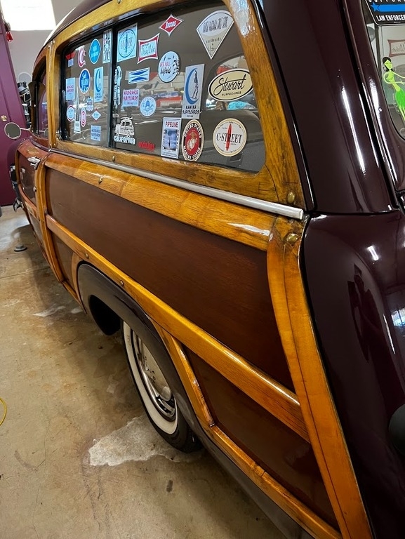 This 1950 Ford Woody Wagon is powered by a 3.9L 239 CID V8 Flathead gasoline engine paired with a 3-speed manual transmission. This Woody Wagon is shown with a Wood and Burgundy exterior with a Tan Interior. True iconic surf wagon. Pampered and loved.