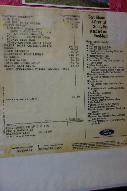 It was purchased by the seller’s parents from Fred Jones Ford in Oklahoma City, Oklahoma in June 1967.