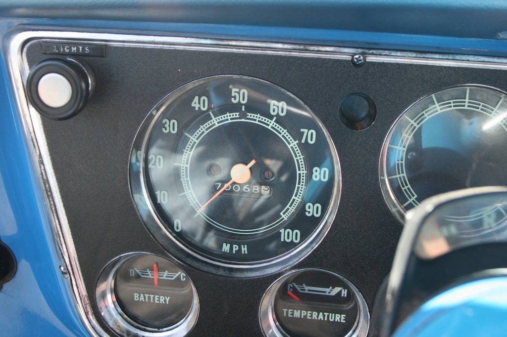This ALL-STEEL Chevy C/K 10 has the original 350ci V8 engine with an automatic Transmission. With ONLY 70,068 original Miles. Sporting a Blue and White exterior with matching interior. This Truck has been owned by the same family since ’71. Owned by Non-smokers, Garage Kept.