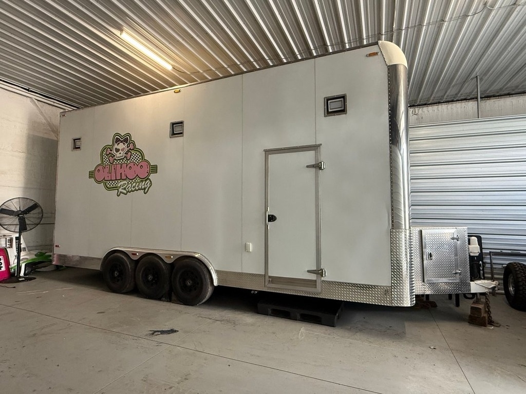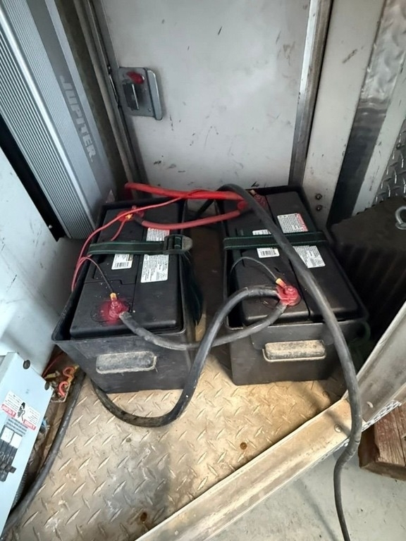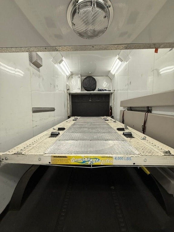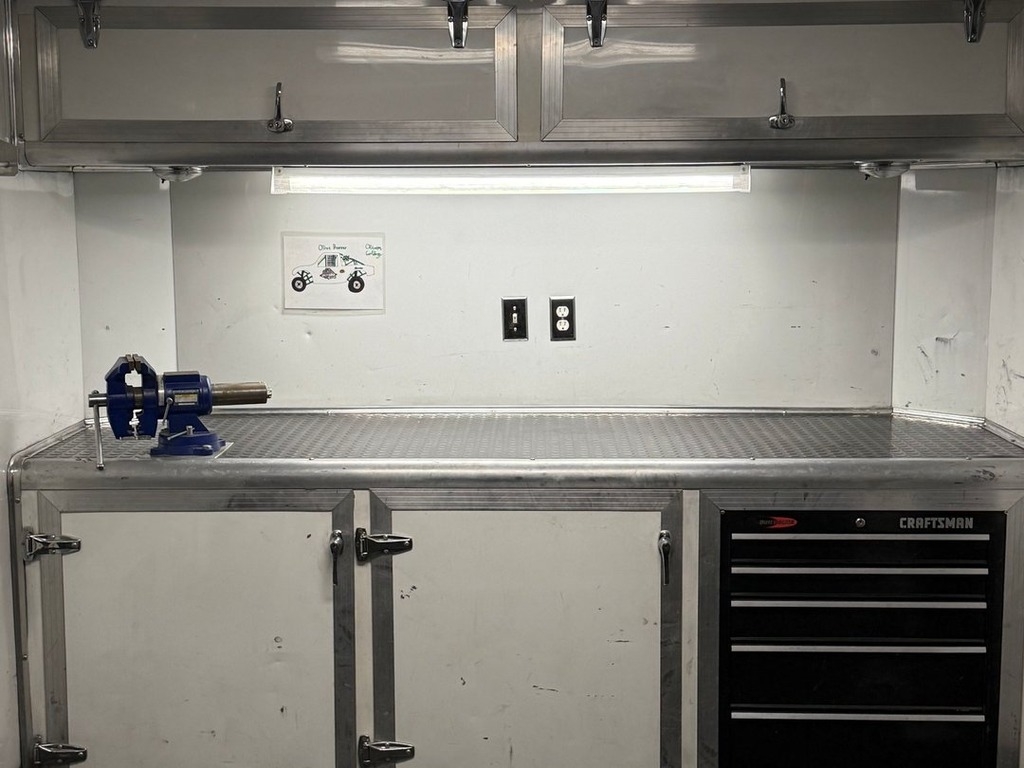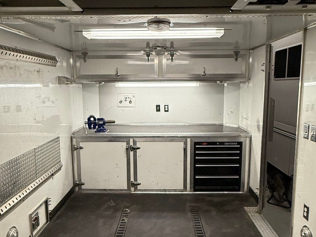 equipped with a 4,000 lb Gemini auto lift, built-in toolbox and cabinets, solar