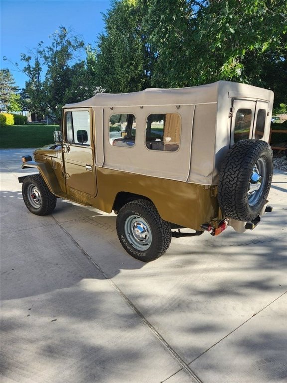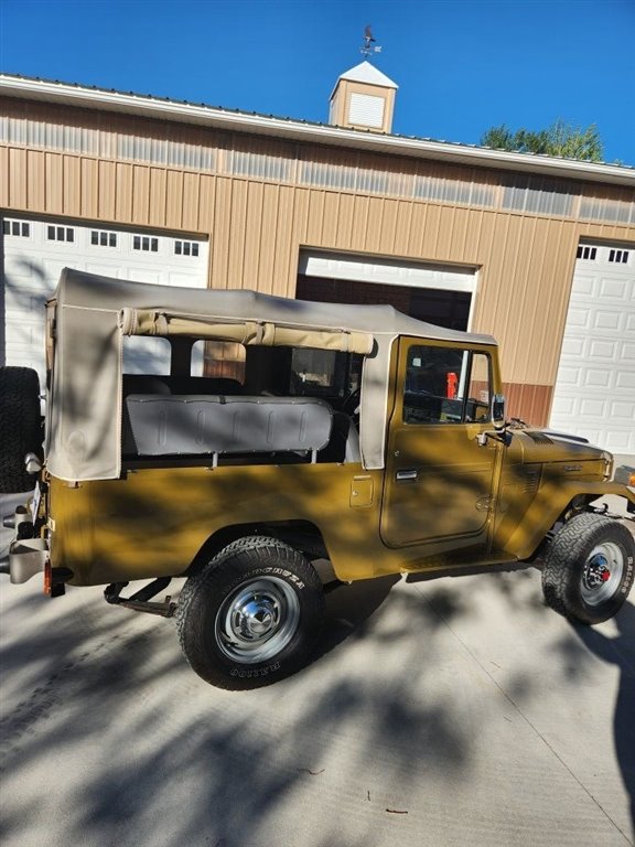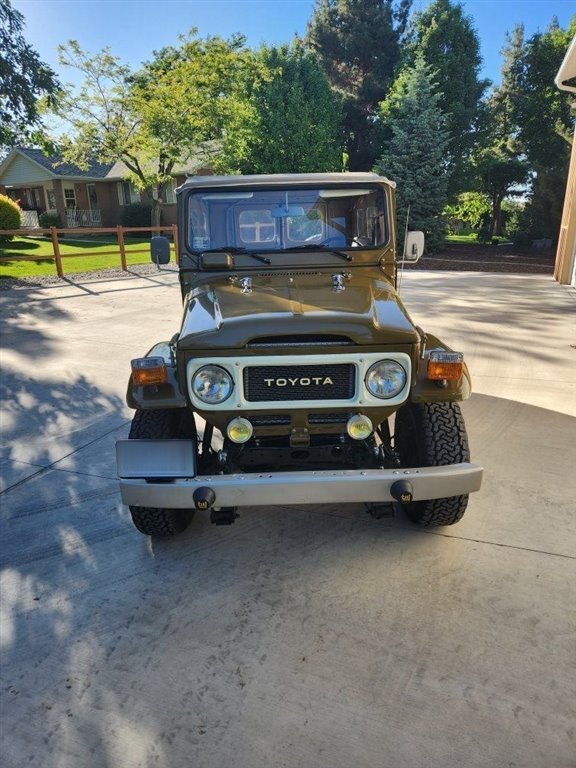 This Toyota is powered by a 4.2L straight-6 engine paired with a 4-speed manual transmission. It has 2,672 miles since the restoration and is shown with an Olive Green exterior and a gray interior. This vehicle has been fully restored and garage-kept.