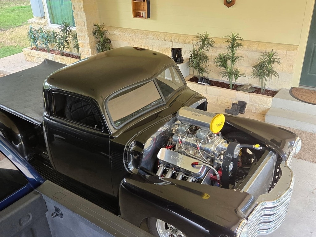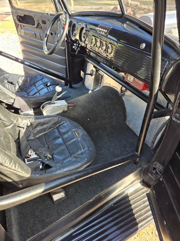 “This 1949 Chevrolet Stepside Pickup is a true custom-built beast, combining classic style with extreme performance. It features a 540 Merlin big block paired with an automatic transmission, rated for an astounding 3,000 horsepower. Equipped with a trans brake, stall converter, and an 871 blower from The Blower Shop, this truck was built to turn heads and dominate the strip. It has been through a full rotisserie restoration and includes Strange 2 way adjustable shocks, manual rack and pinion steering, four-wheel disc brakes, a 6-inch chopped top, safety glass windshield, and a removable steering wheel. Shaved door handles and Weld Racing wheels (5x15 front, 13.5x15 rear) give it a sleek, aggressive look. Out back, it’s built with a 9-inch Strange housing, 4.30 gears, Strange 31-spline axles, and ladder bars with new 2-way adjustable overhead shocks. Cooling is handled by a new 42-inch 4-core radiator with dual fans and a new water pump. Under the hood, it boasts Dart heads, flat top pistons, stud girdles, an 800 lift roller cam, roller rockers, double roller timing chain, 750 Demon carbs, ceramic 2¼-inch headers, 3-inch stainless exhaust, and a vacuum pump with a new blower belt. Inside, it’s fitted with five-strap seatbelts, tach and rev limiter on both sides, and race-ready comfort. Comes with an extra 9-inch Strange housing and gear, along with additional blower pulleys. This is a serious build for the serious enthusiast—no expense spared, no corners cut.”