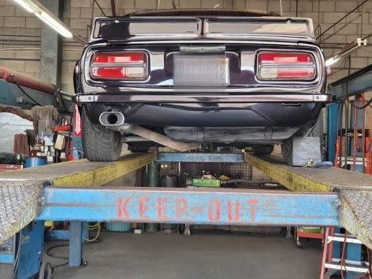 This Datsun is powered by a 6 cylinder engine paired with a 5