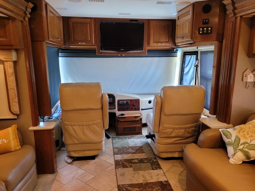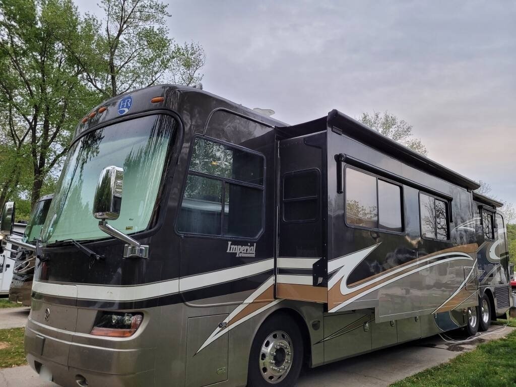 “This 2008 Holiday Rambler Imperial Trinidad IV Class A Diesel is in exceptional condition and has been meticulously maintained with numerous upgrades and replacements. It features newer tires with polished aluminum wheels and has an upgraded king-size bed for added comfort. The living area boasts a newer leather sofa with a queen air mattress and a newer leather J-lounger with storage, providing ample seating and sleeping space. Over the past couple of years, the coach has received several important updates, including a resealed roof, a new one-piece windshield, and new rear lights. The house batteries were replaced with 8 new ones, and the power entry door awning, driver-side slide-out topper awning, and lighted grab handle keypad and doorbell were all replaced for enhanced convenience. Other updates include new rubber slide-out seals, EMS boards, a new bed slide motor, and updated step and leveling system control modules. The coach also received fresh oil changes for both the engine (with less than 1,000 miles) and the generator (with less than 100 hours). In 2024, following a power surge issue, the coach was further upgraded with two new AC units, a new EMS control unit, a new dryer, and a complete replacement of the E-Plex communication system. The Aqua Hot system internals were replaced, and the 12V lighting issues were resolved, ensuring everything operates smoothly. This well-maintained motorhome is ready for the road and comes with all the modern comforts and features you need for an enjoyable journey. With numerous updates and replacements, it’s a reliable and luxurious option for any adventure.”