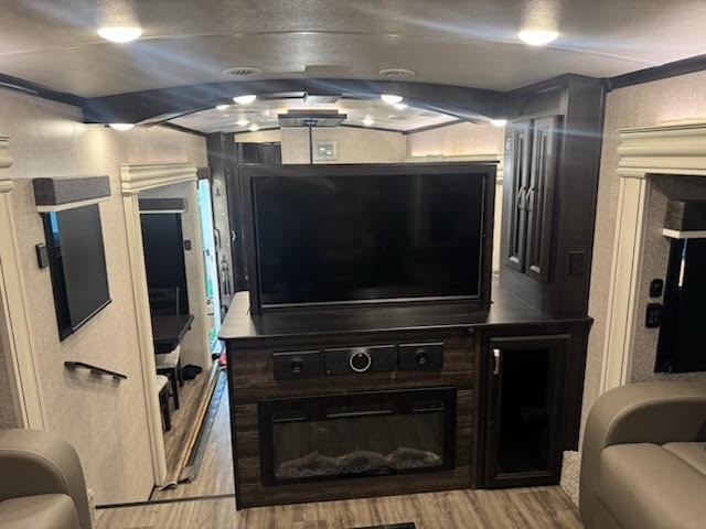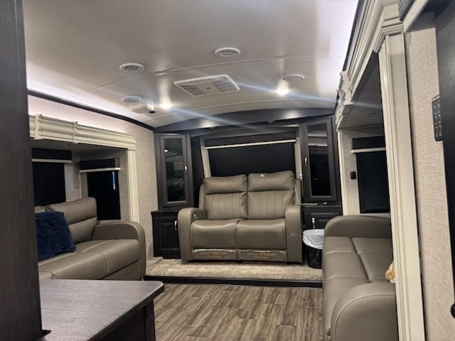 enjoy the front living layout with dual hide-a-bed sofas, theater seating with