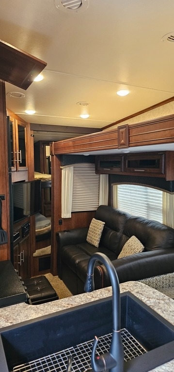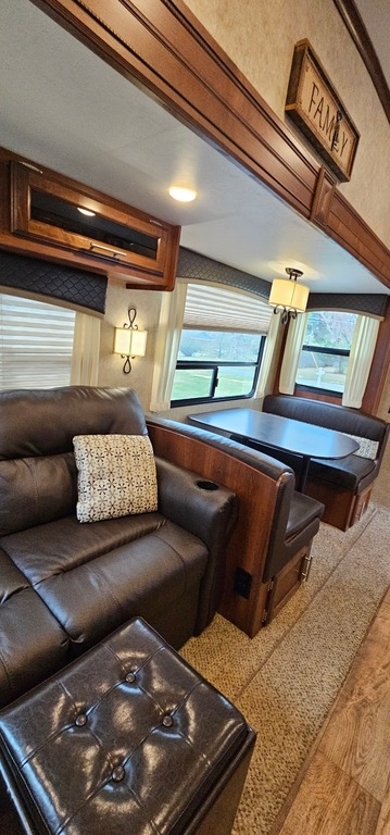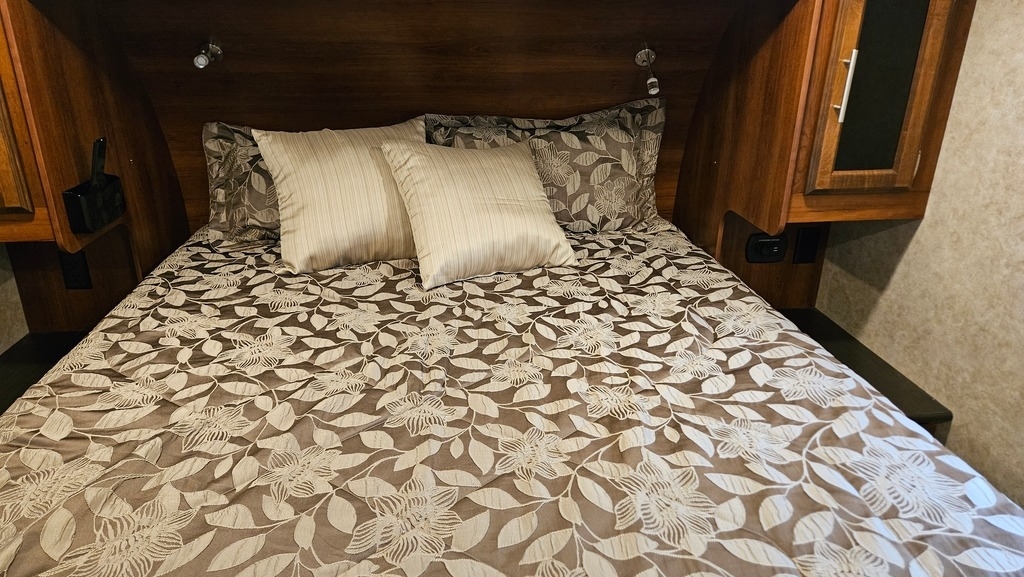 length of 34.6 feet and comes equipped with 2 power retractable slide-outs, 1