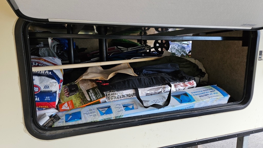 power retractable awning, a bunkhouse, an outdoor kitchen, and plenty of room