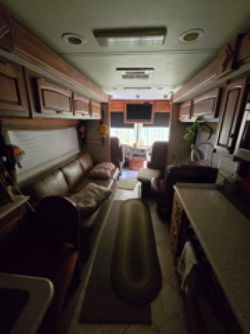 This Monaco is powered by an 8.3L I6 diesel engine and a 6-speed automatic transmission with 4,000 miles. The overall length is 41.46 feet and comes equipped with 3 power retractable slide-outs, 1 power retractable awning, 2 A/C units, a generator, 1½ baths, and plenty of room to sleep 6. This unit has been well-maintained.
