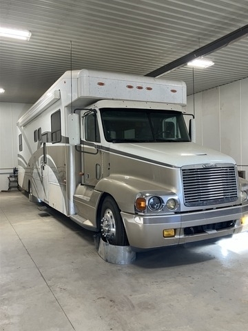 “2002 NRC coach on Freightliner chassis 12.5K generator, Cat C15 550 hp. 65,228 original miles,10 speed auto shift.
