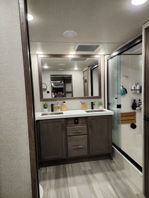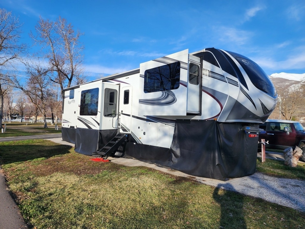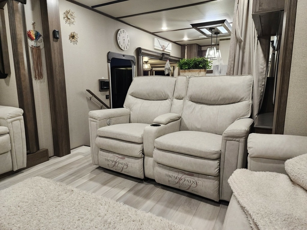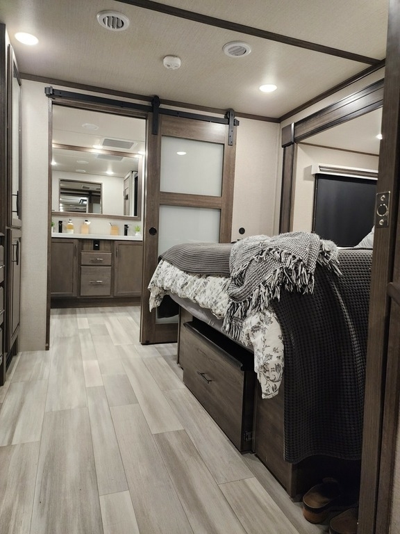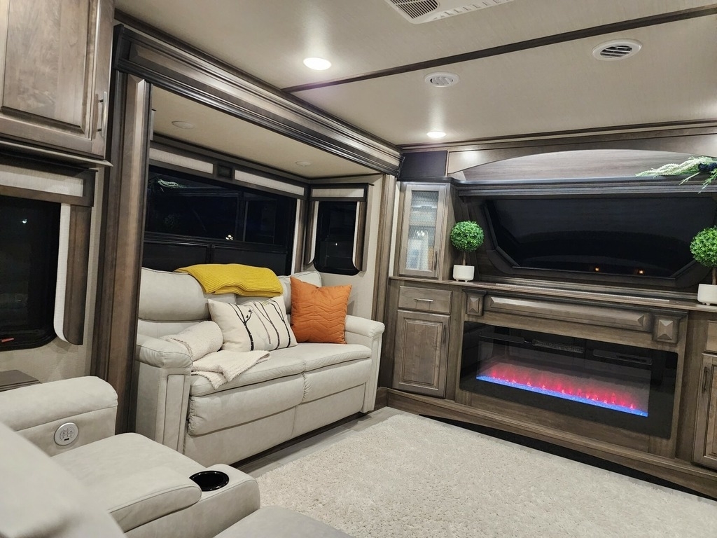 This Grand Design has an overall length of 41.42ft and comes equipped with 5 Slide Outs, 2 Power Awnings, 2 AC Units, 2 Bathrooms, and Room to Sleep 6. Comes furnished and Includes all Decorations, Silverware, etc...