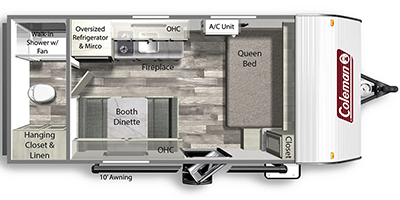 This Dutchmen has an overall length of 21.42 feet and comes equipped with 1 power retractable awning, 1 A/C unit, a fireplace, and plenty of room to sleep 4. This unit has been well-maintained.