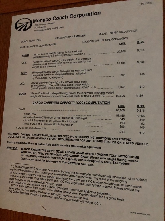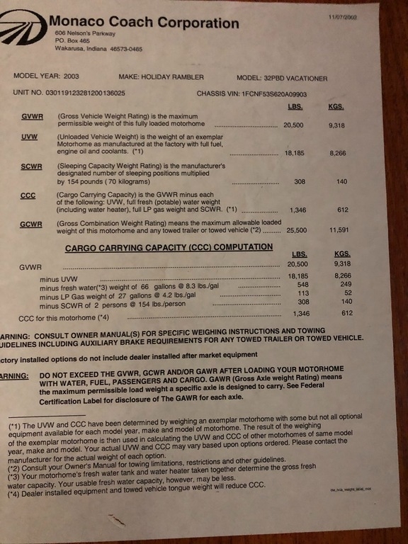 2003 Holiday Rambler Vacationer Class A RV for sale in Lewiston, NY 14092