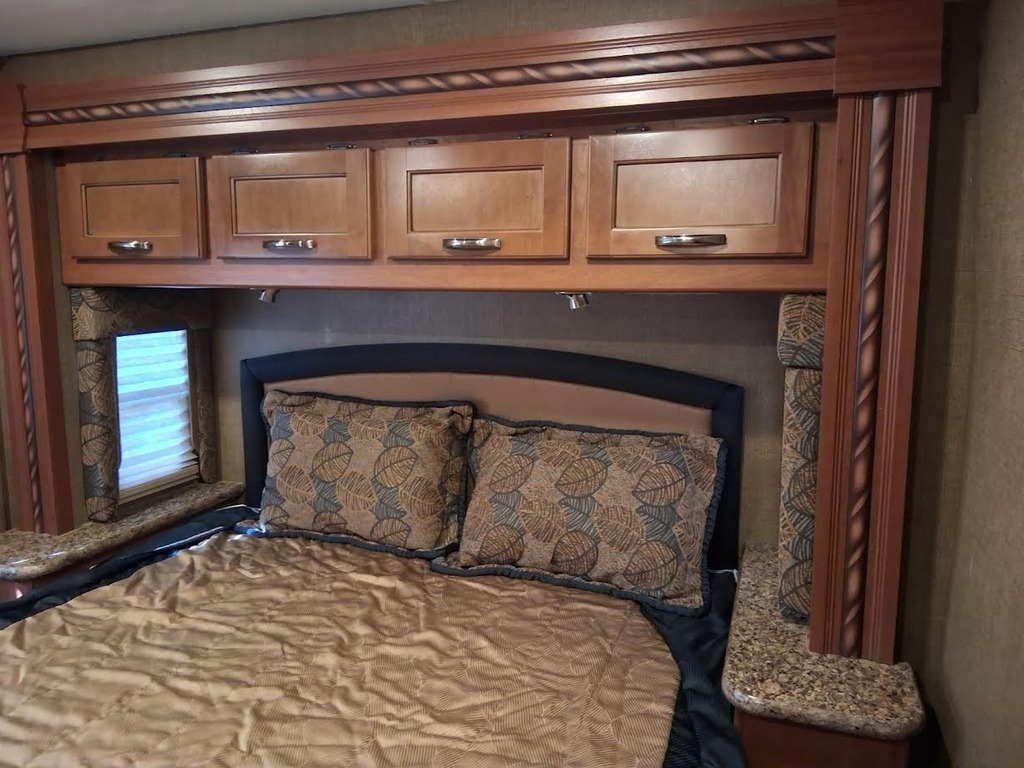 This Thor is powered by a 6.8L V10 engine and a 6-speed automatic transmission with 28,361 miles. The overall length is 29.92 feet, and it comes equipped with 2 power-retractable slide-outs with toppers, a 14-foot power awning, 1 A/C unit, an Onan gas generator, an outdoor kitchen & entertainment system, and room to sleep 6-8. This unit has been well-maintained and comes with a full cover.