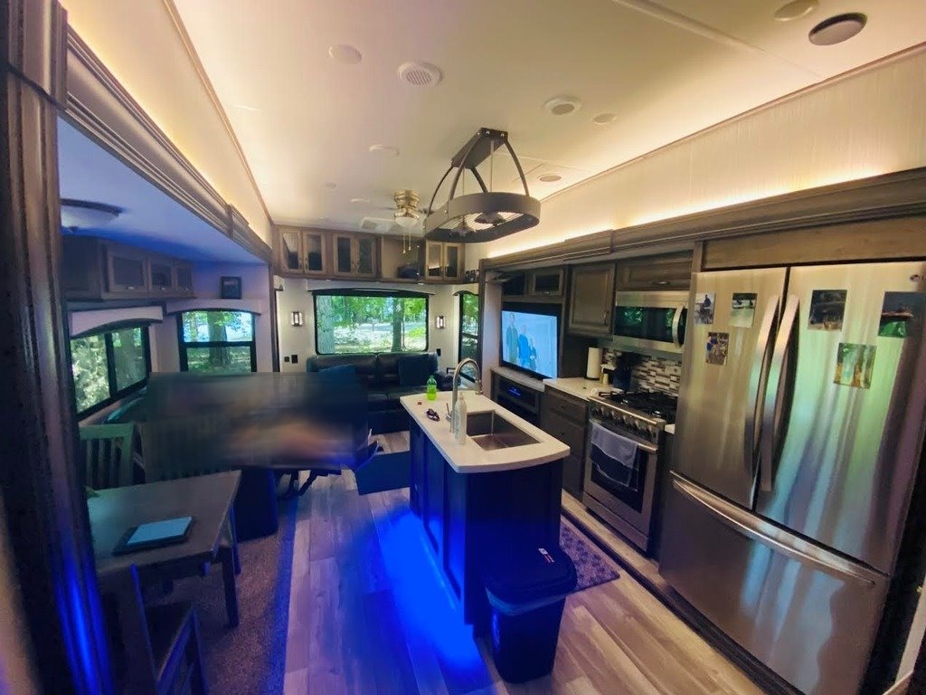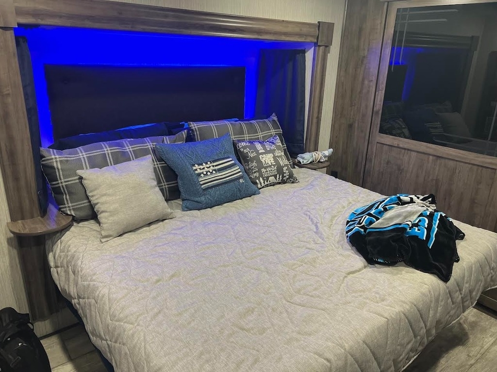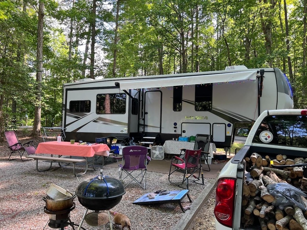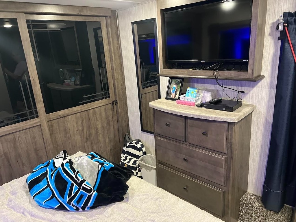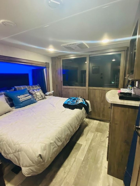 This Forest River Sierra has an overall length of 35 feet and comes equipped with 3 power retractable slide-outs, 1 power retractable awning, 2 A/C units, and plenty of room to sleep 4. This unit has been well-maintained.