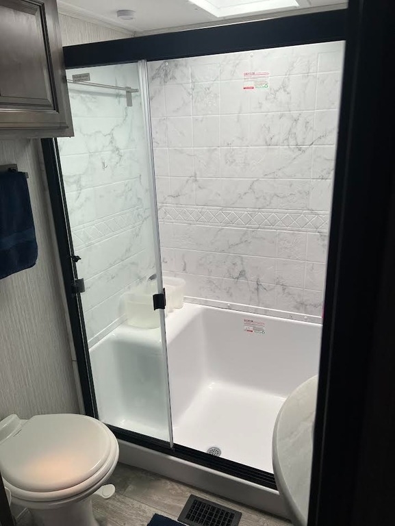 “The roof will need to be recoated as part of normal maintenance, but it does not leak and has remained dry. A fifth-wheel hitch suitable for a short-bed truck is also available if desired, making this unit ready to tow with the right setup.”