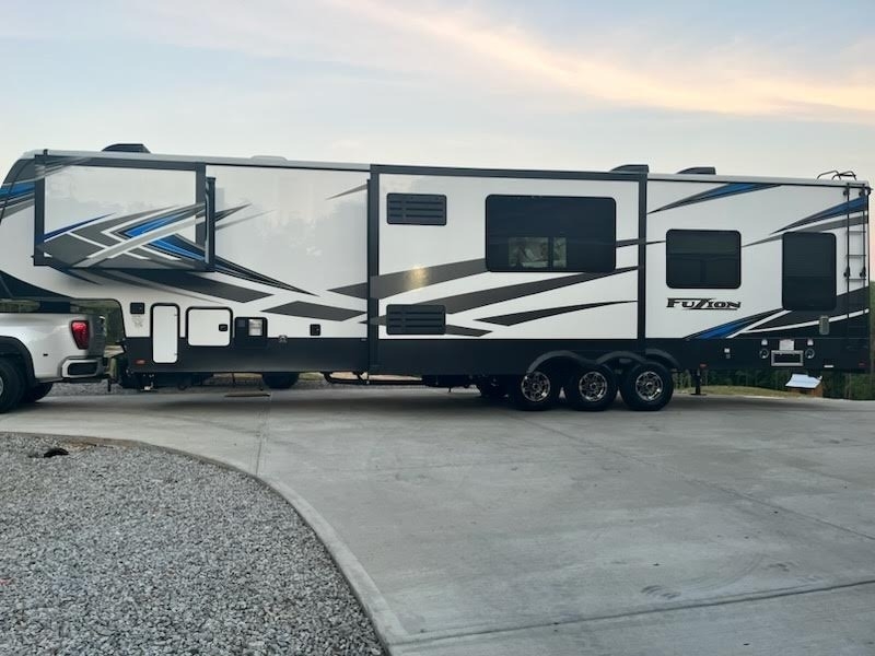 “This 2021 Keystone Fuzion 427 Fifth Wheel Toy Hauler is in
