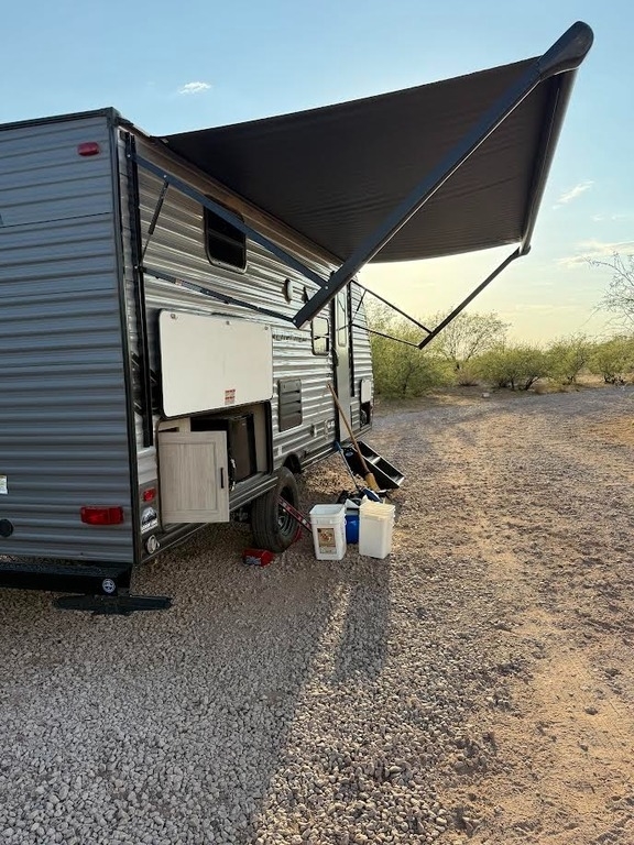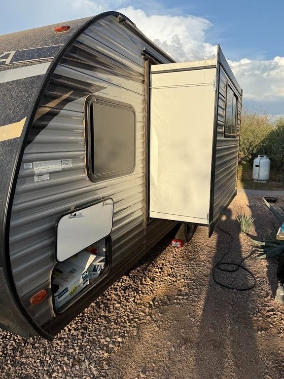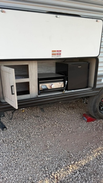This Forest River has an overall length of 23.08 feet and comes equipped with 1 power-retractable slide-out, a 15-foot power awning, A/C, bunk beds, an outdoor kitchen, and room to sleep up to 8. This unit has been well-maintained.