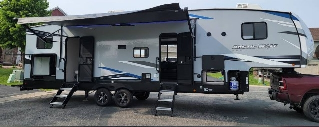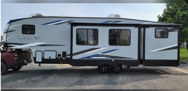 This 2021 Forest River Cherokee Arctic Wolf is 37ft, has 2 Slides, 3 Awnings and plenty of room to sleep 10. This is a non-smoking/non-pet RV and there has not been any accidents or water damage.