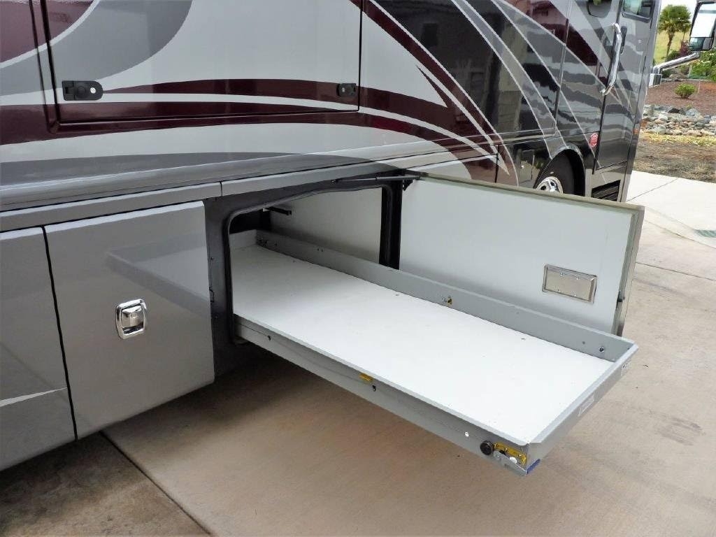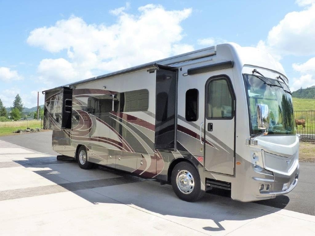 This Fleetwood is powered by a Cummins ISL9 engine and an Allison 6-speed automatic transmission with 9,000 miles. The overall length is 36.9 feet and it comes equipped with 4 power retractable slide-outs, 3 power retractable awnings (with built in lighting and remote), 3 A/C units, and plenty of room to sleep 6. This unit has been well-maintained.