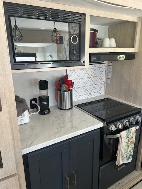 bed, versatile dinette and sofa sleeping options, a modern kitchen with quality
