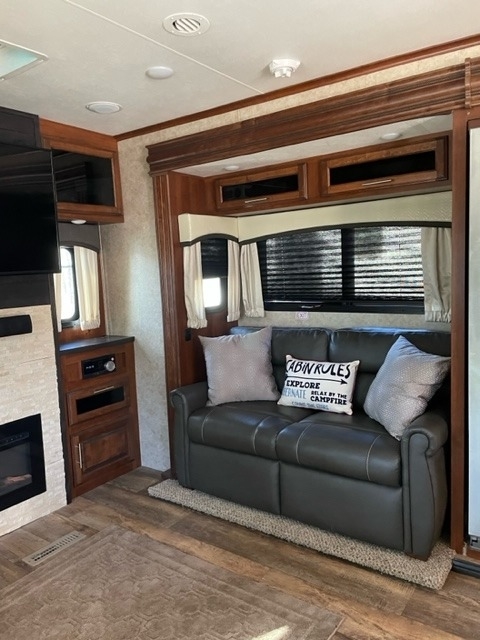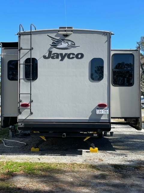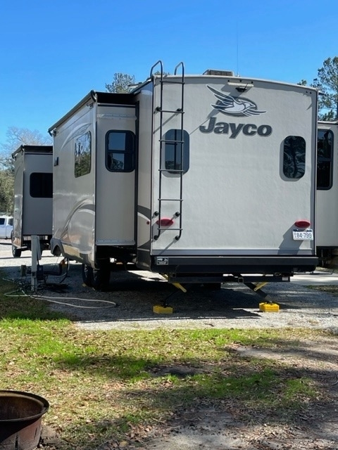 This Jayco has a overall length of 39.25ft and comes equipped with 3 Slide Outs, 2 Awnings, 2 AC Units and Room to sleep 4.