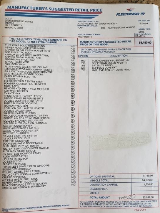 2015 Fleetwood Flair 26D For Sale in Clayton, NJ 08312