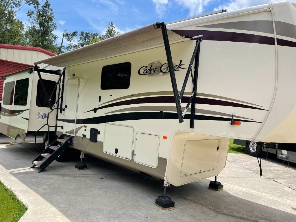 This Cedar Creek has a overall length of 41ft and Comes Equipped with 3 Slide Outs, 1 Awning, 2 AC Units and Room to Sleep 2. There have been no accidents or water damage.