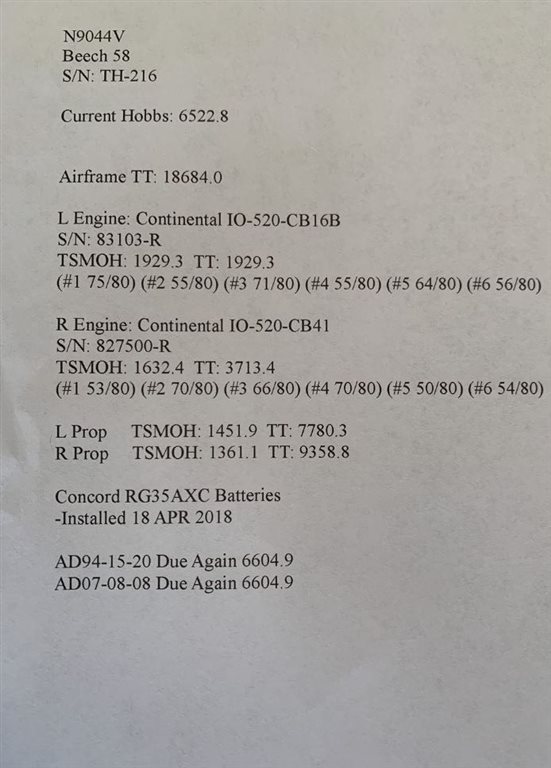 1972 Beechcraft 58 Baron Offered for Sale.